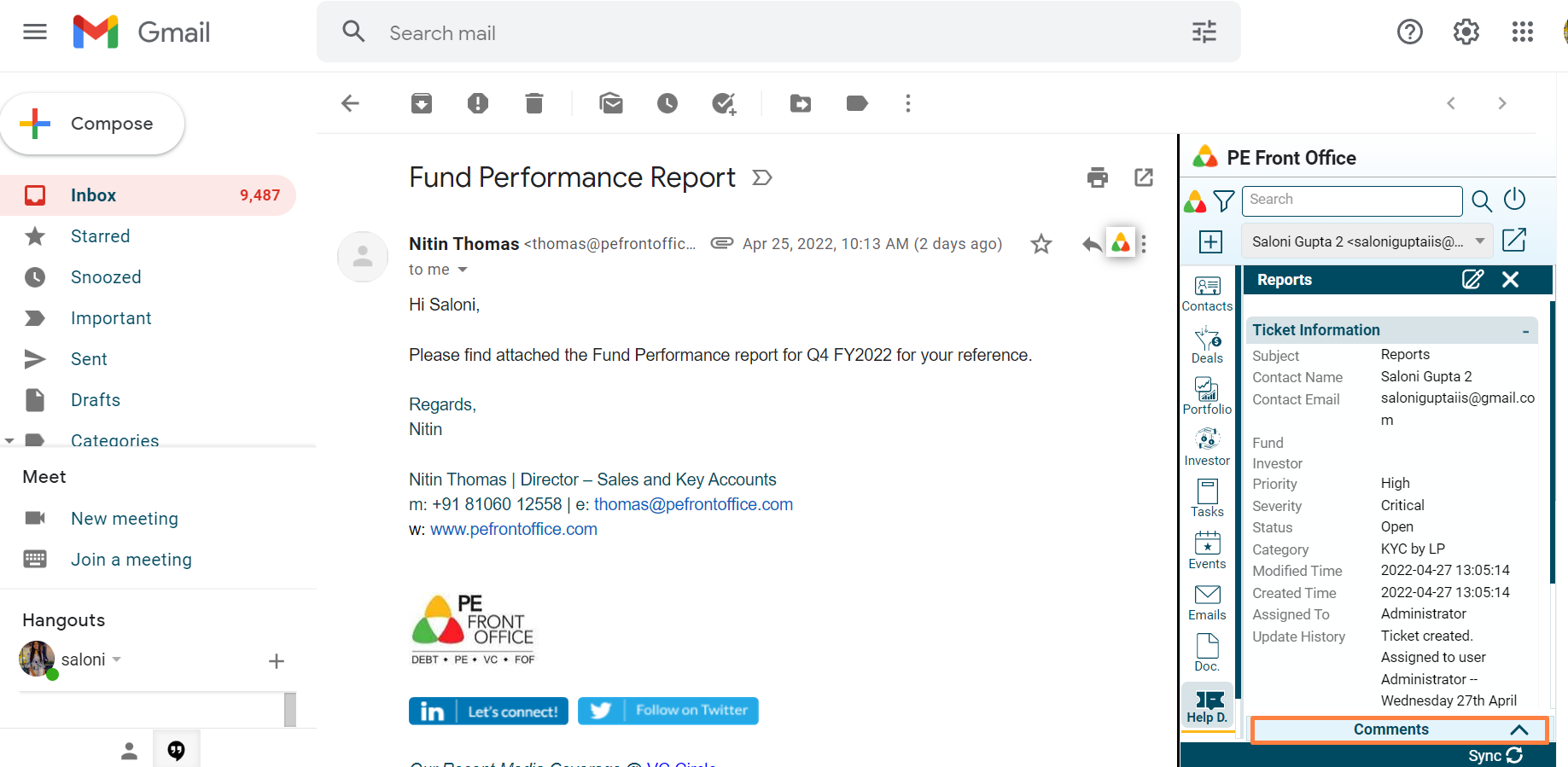 2. The Help Desk window is displayed. Click on a Ticket to view details.