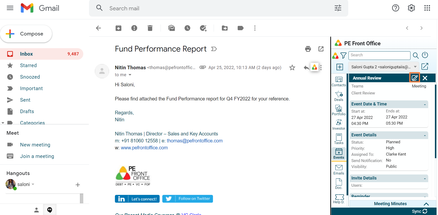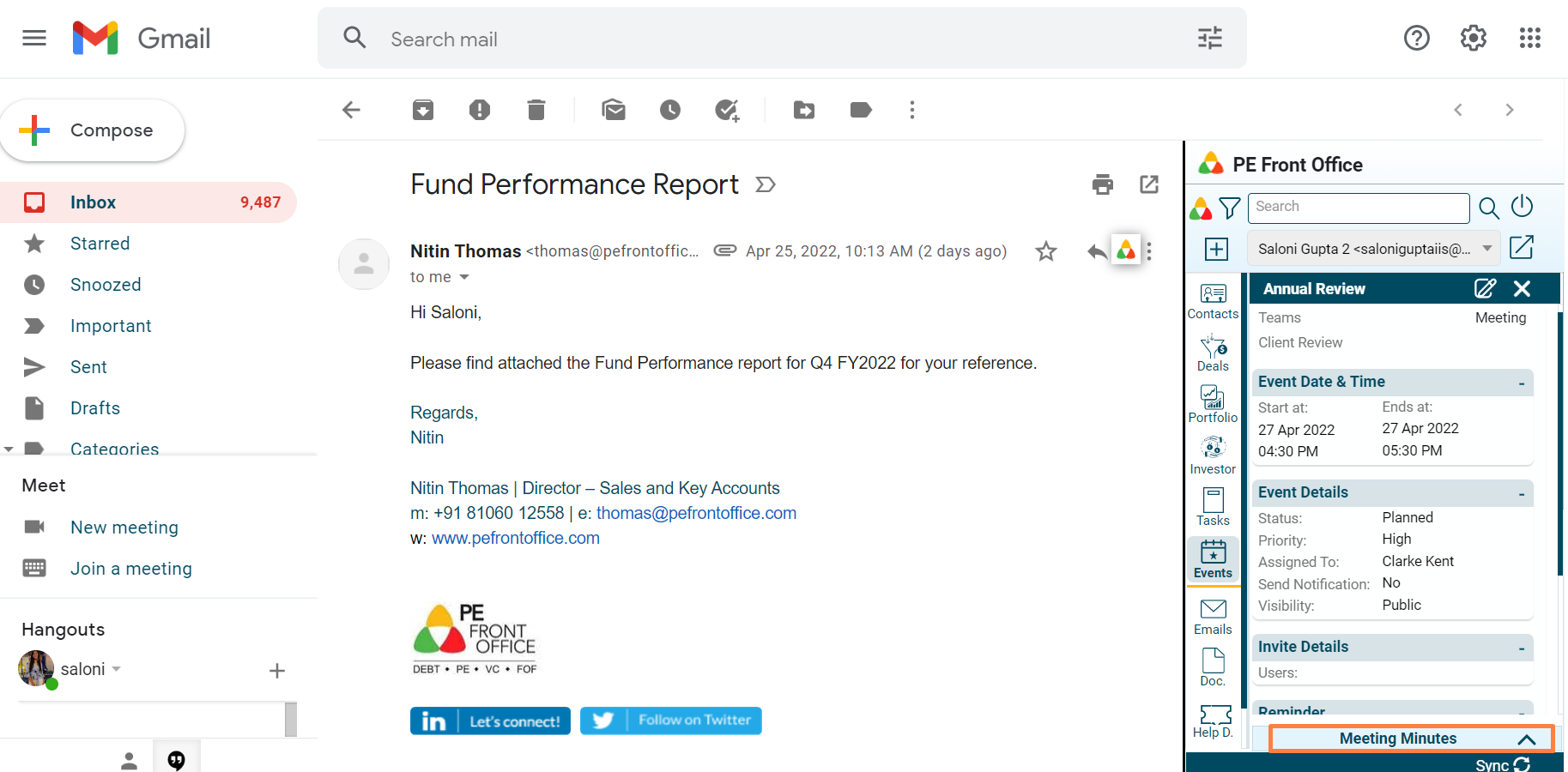 3. Click on Meeting Minutes button to capture any meeting notes.