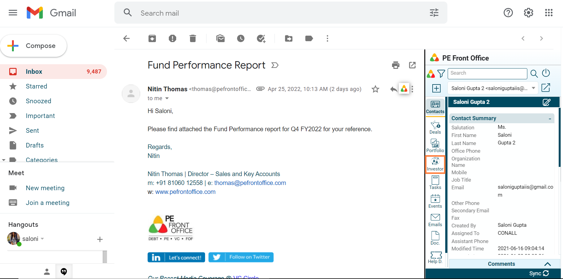 To view an investor associated with the contact, follow the below steps: