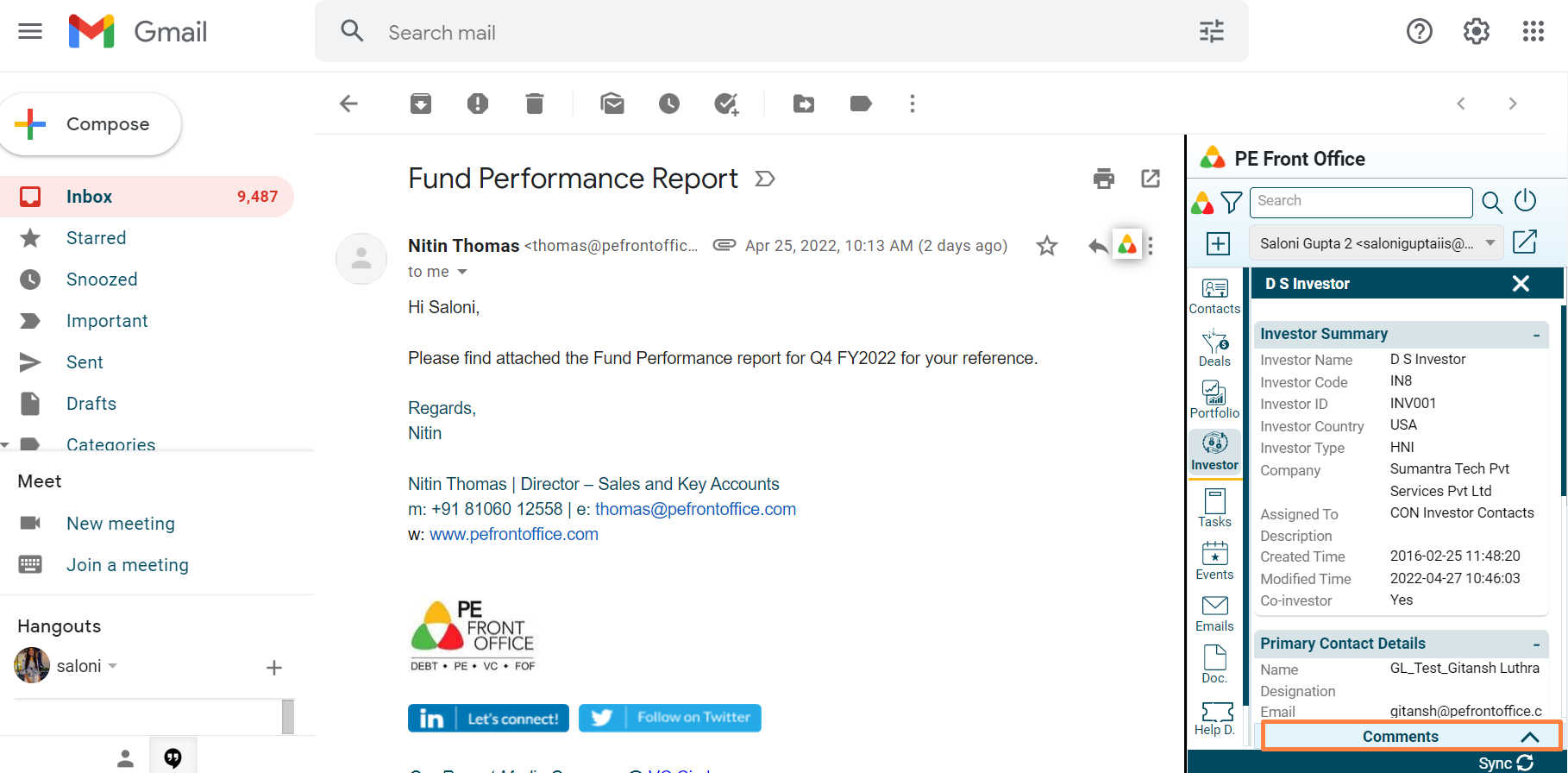 3. Click on Comments button to capture any investor related comments.