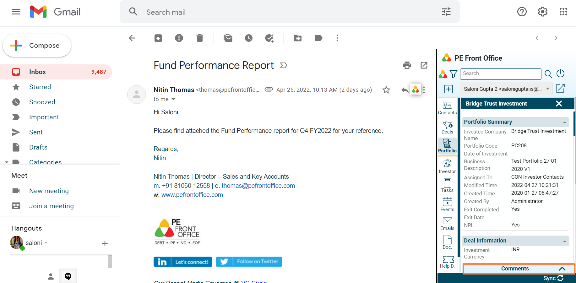 2. The Portfolio Company window is displayed. Click on Portfolio Company Name to view details.
