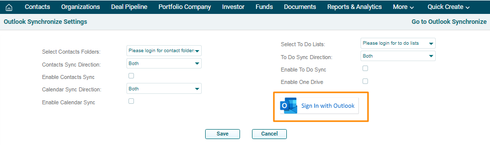 2. Click on Synchronize Calendar and Synchronize To Do buttons to sync contacts.