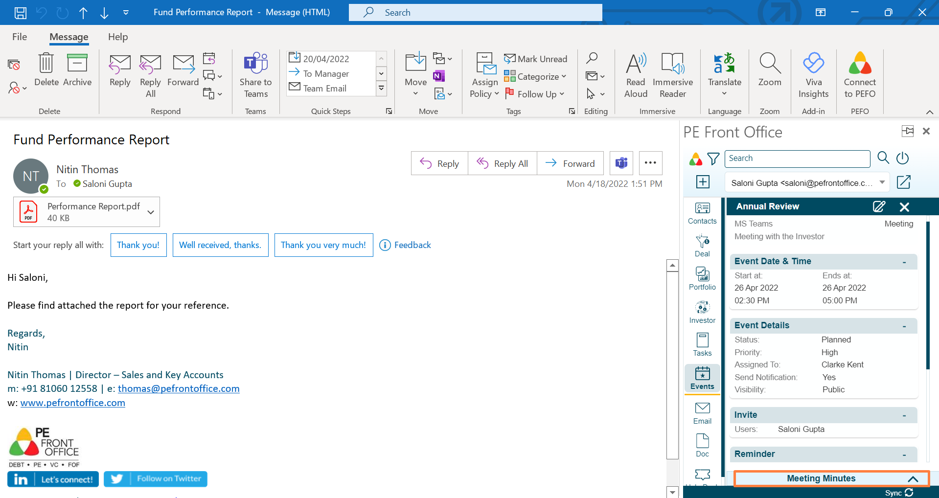 3. Click on Meeting Minutes button to capture any meeting notes.