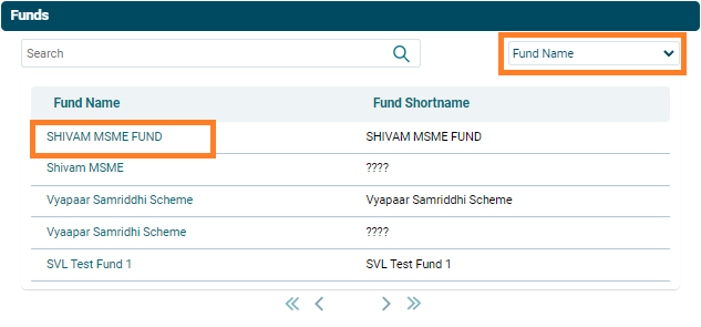 The Funds window is displayed. Search for the fund name. Select the filter on the top left corner. Search results are displayed. Click on a Fund Name to add them as a member.