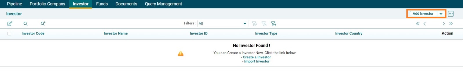 1. Click on Add Investor in the top right corner.