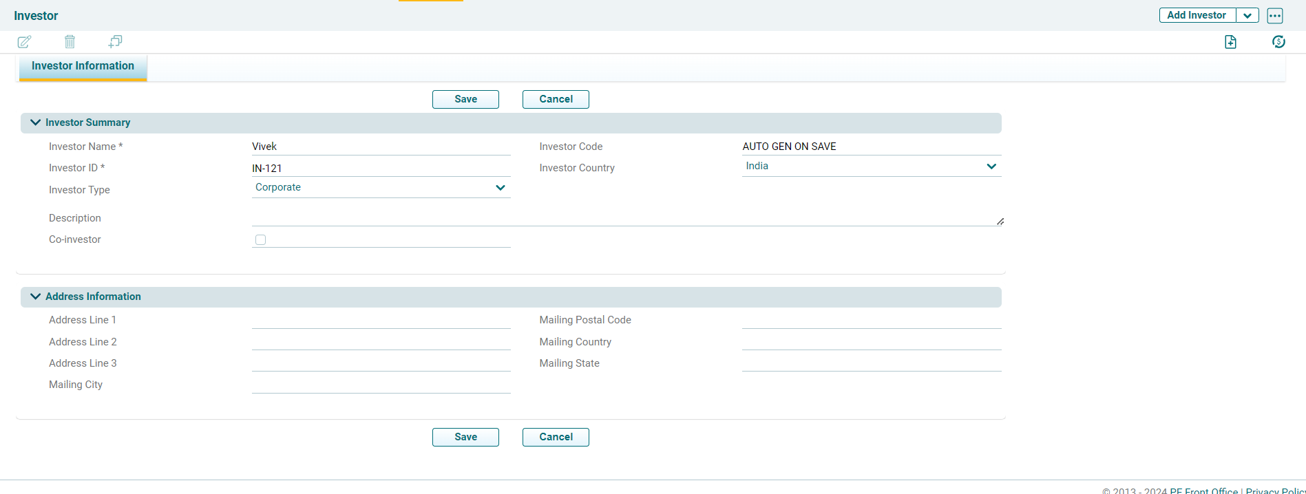 To create a new investor in the fund, follow the below steps:
