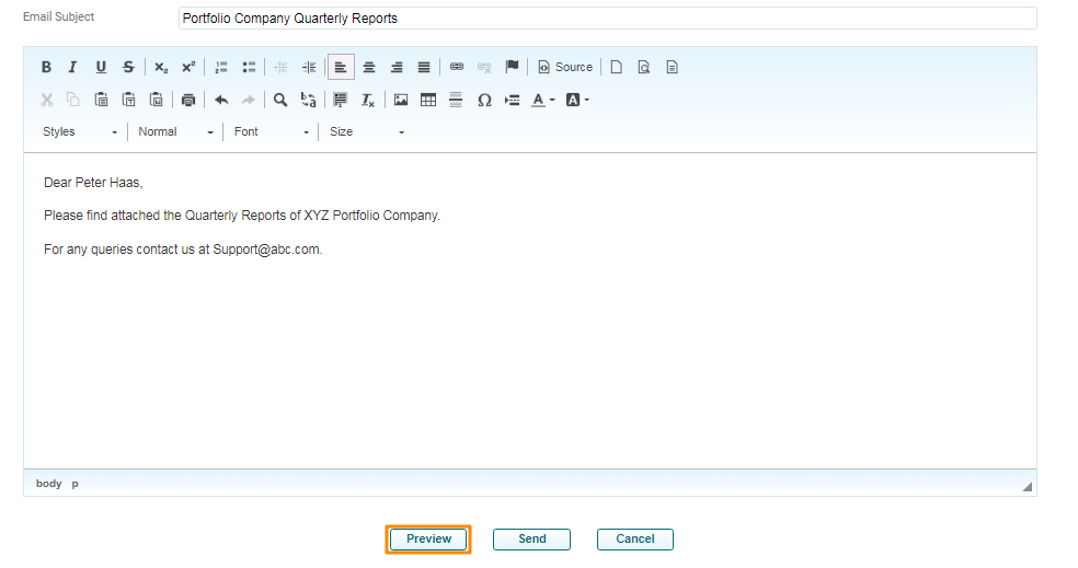 4. Enter the subject details. Click on Preview button to preview the email.