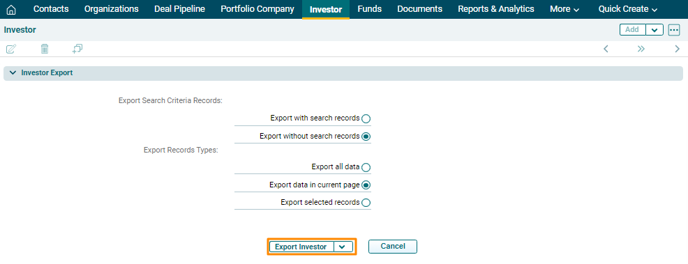 the three dot menu next to Add Investor button. Click on Export to Excel.