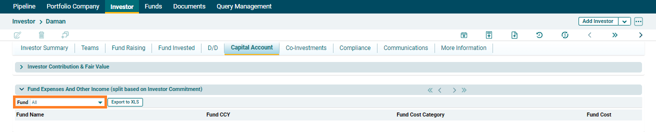 This panel allows you to see fund expenses related to a fund associated with the investor.