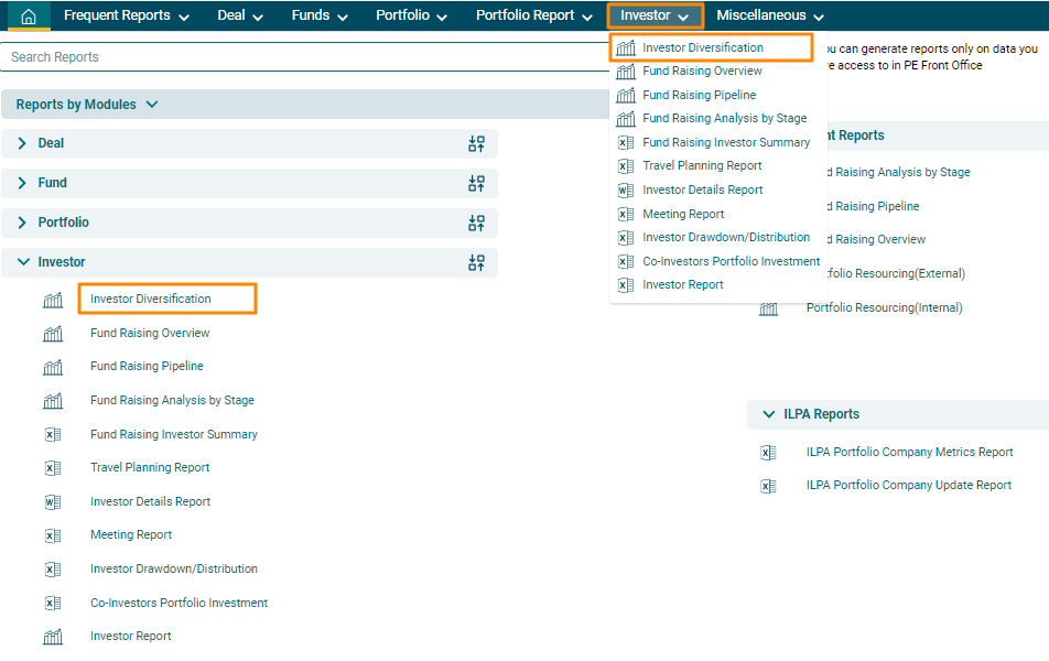 | Diversification window is displayed. It displays the data in the Pie Chart