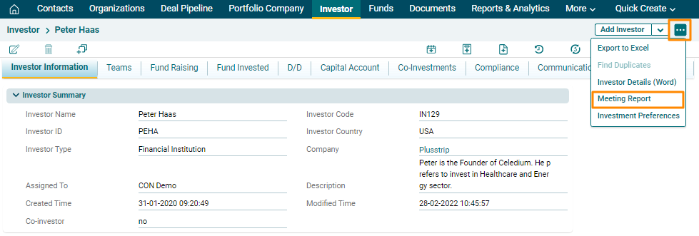 3. Click on the three dot button in the top right corner. Click on Meeting Report. The Excel file will download.
