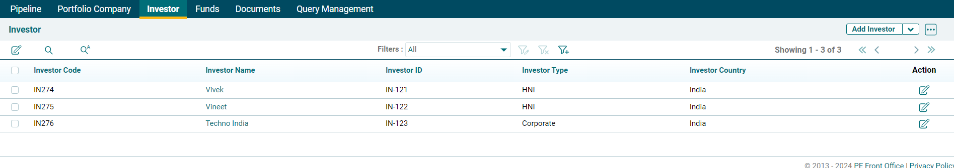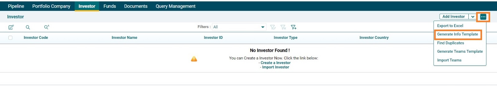 4. On uploading the template, Investors will be created in the List view