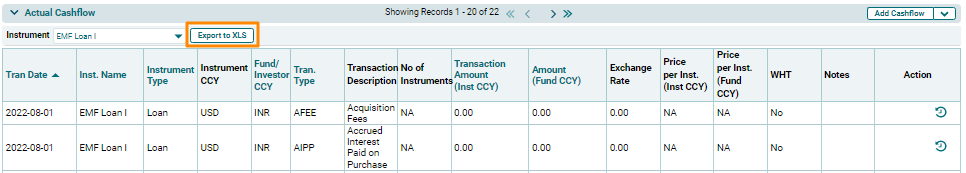 1. Click the Instrument dropdown list and select the instrument for which you wish to download the report. Select All for all instrument cashflows.