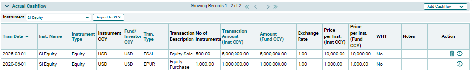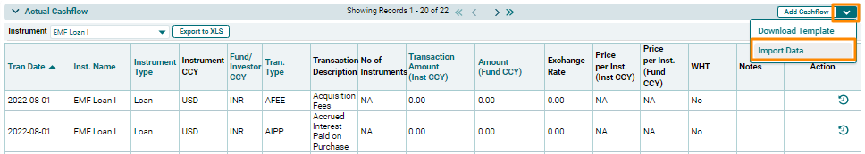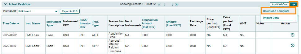 cashflows for instruments, click on the down arrow button next to Add Cashflow