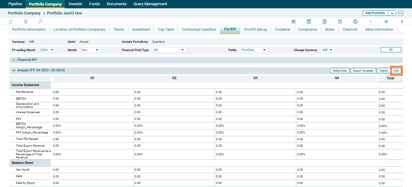 To edit Fin/KPI data, follow the below steps: