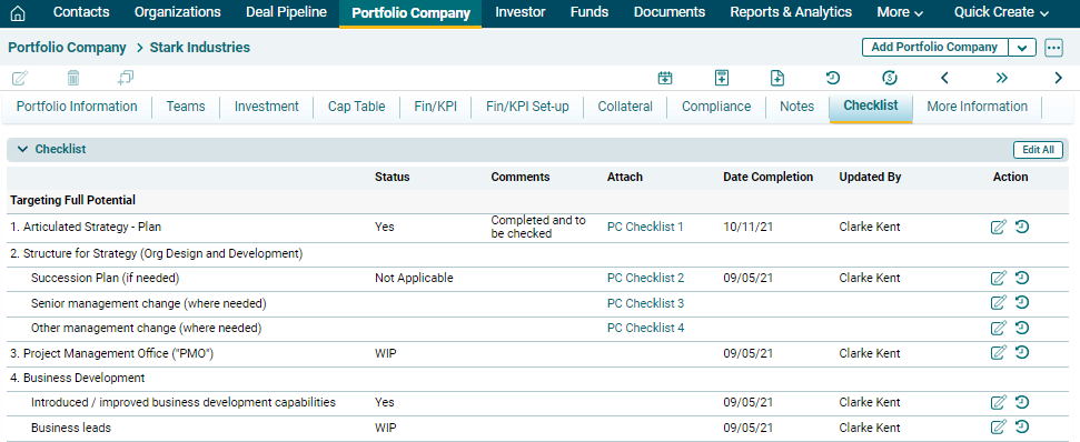 To edit all contents of the checklist, click on Edit All (