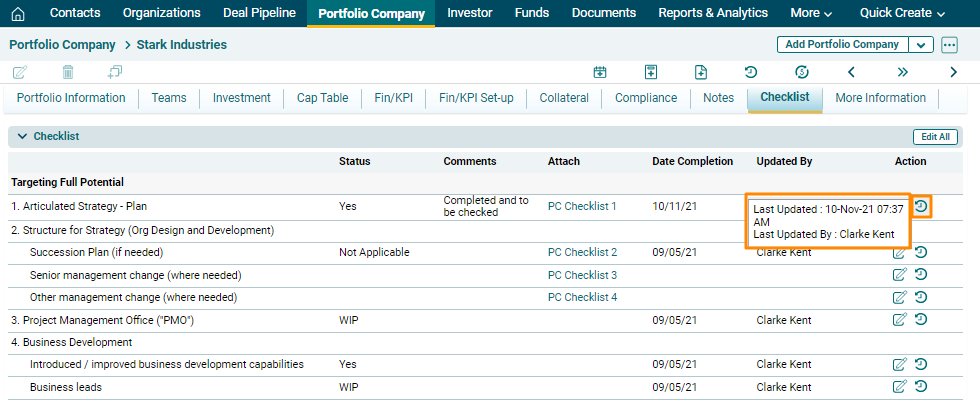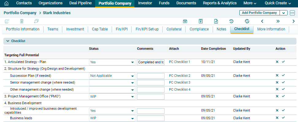 The checklist tab keeps the records of the actions that must