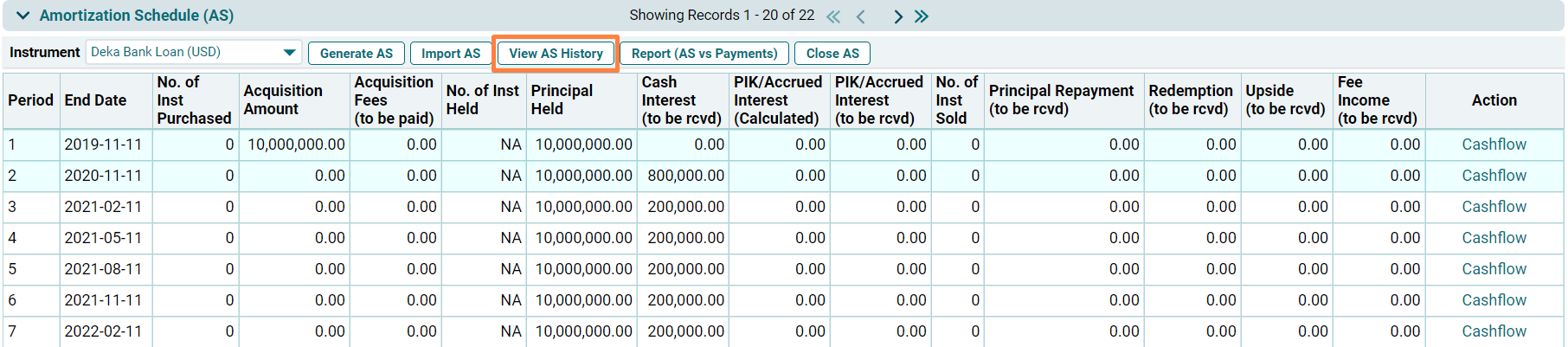 button allows you to access the previous version of AS uploaded by any user and download the excel to view or make changes in the existing AS. To view AS history,