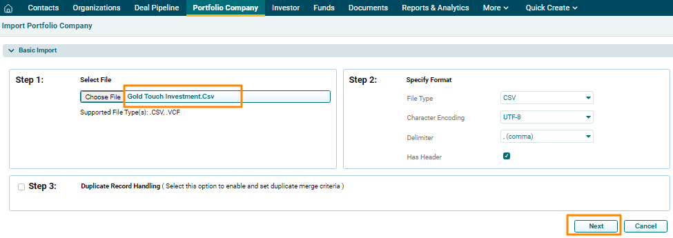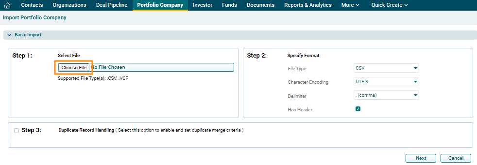 choose the file, it will be reflected in Step 1. Based on the file chosen, Step
