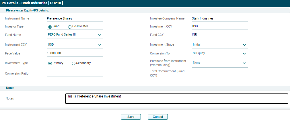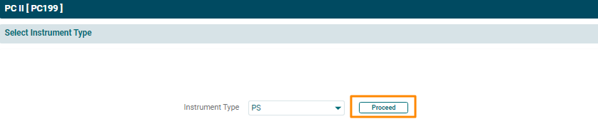 2. The Instrument Type window is displayed. Select PS from the Instrument Type dropdown list. Click Proceed.