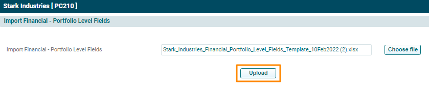 6. Choose the Portfolio Level Field Template. Click Upload.