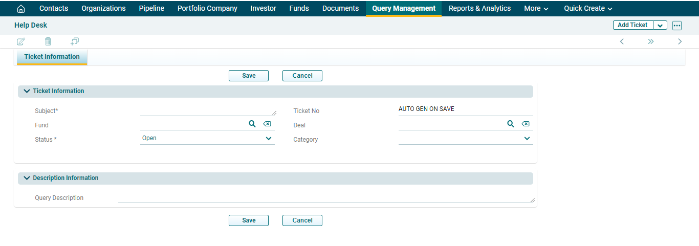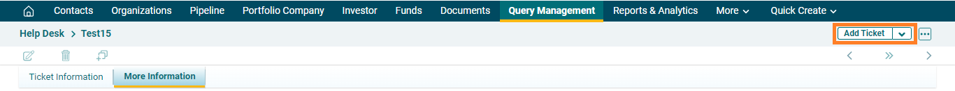 2. Navigate to more information and click on the Add Ticket button in the top right corner.