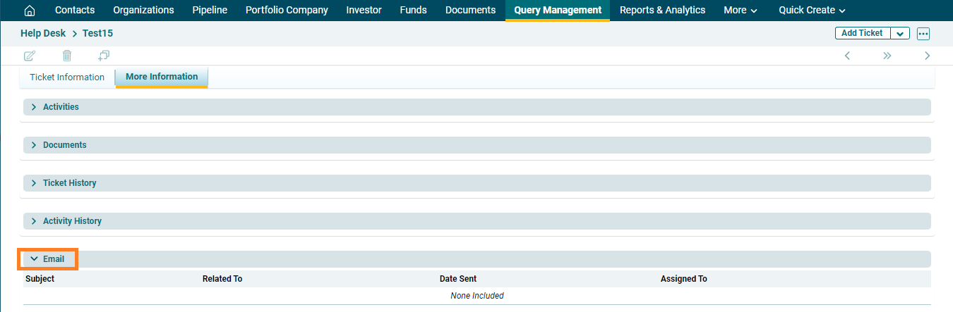 3. Navigate to Email, history of important email communication is maintained here for future reference. Click on the email's subject to view the message.