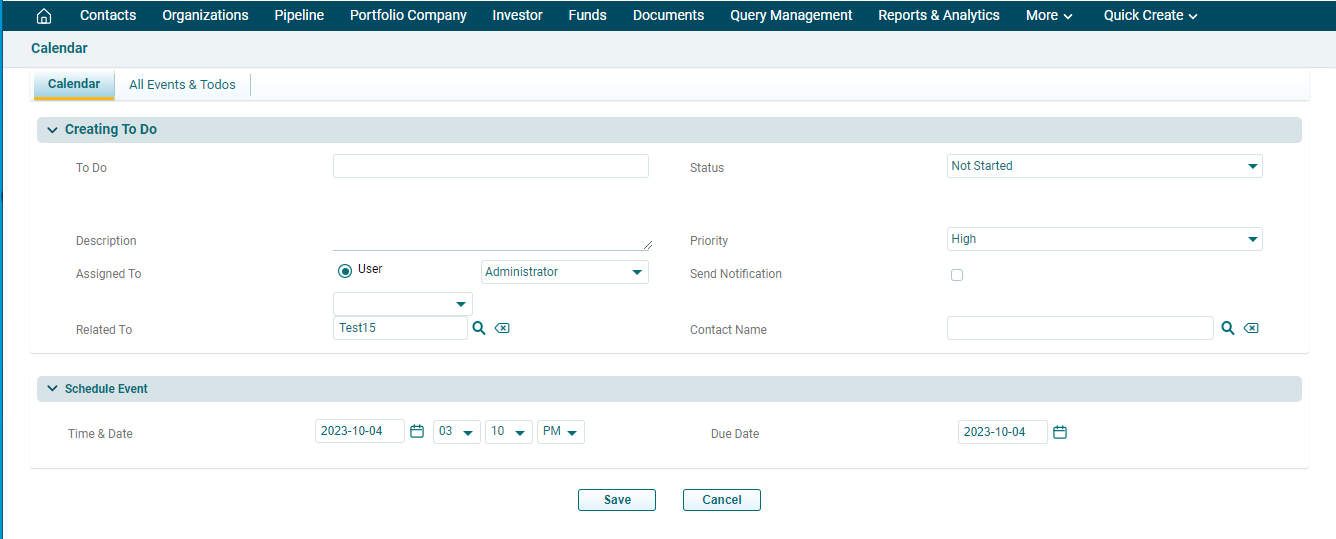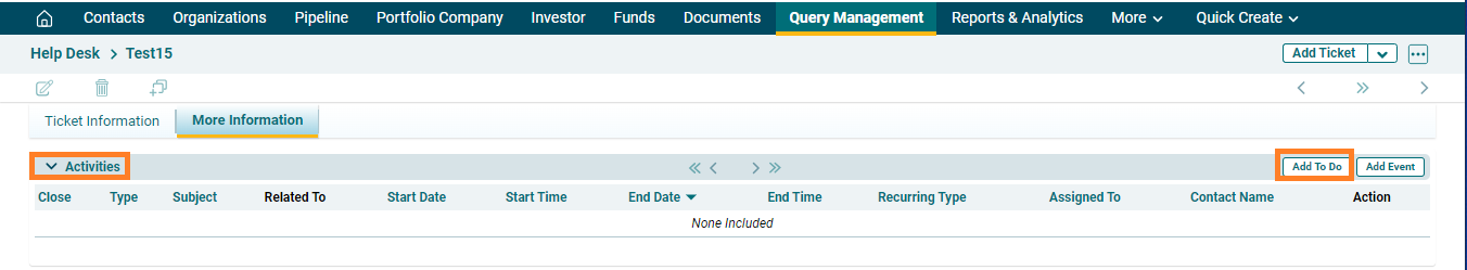 3. Click on Activities, on the top right panel click on Add To Do.