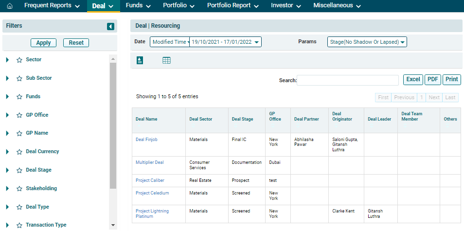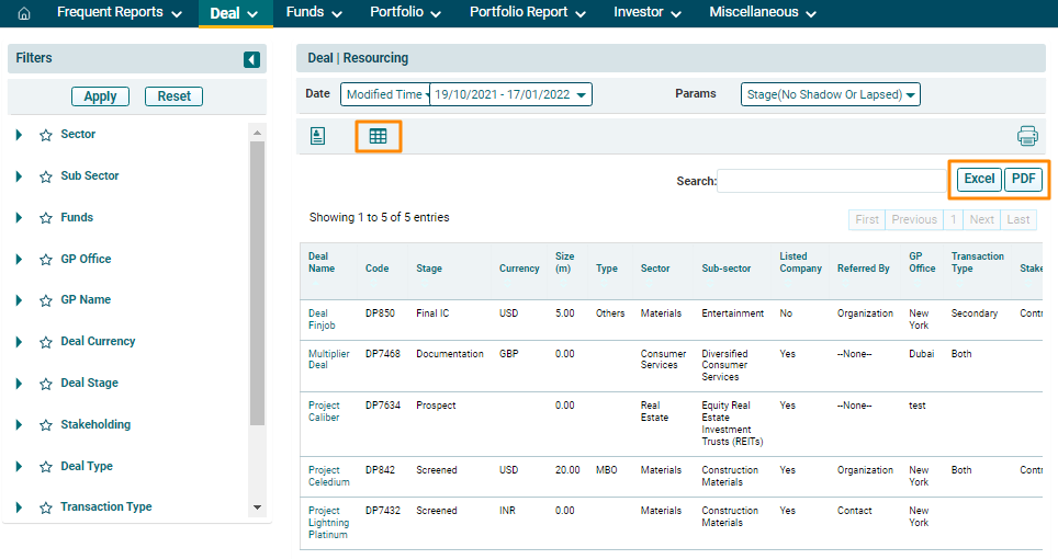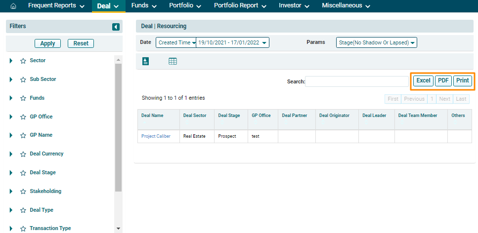 You can view the grid based on the changed parameters. You can also download the report in Excel and PDF format. You can also use the Print button to print it.