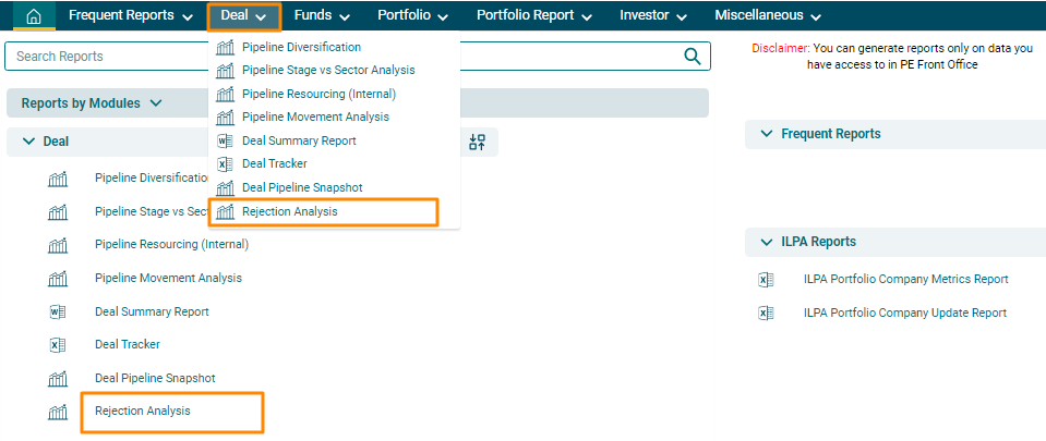 3. The Deal Rejection Analysis window is displayed. It displays the graph based on the set parameters.