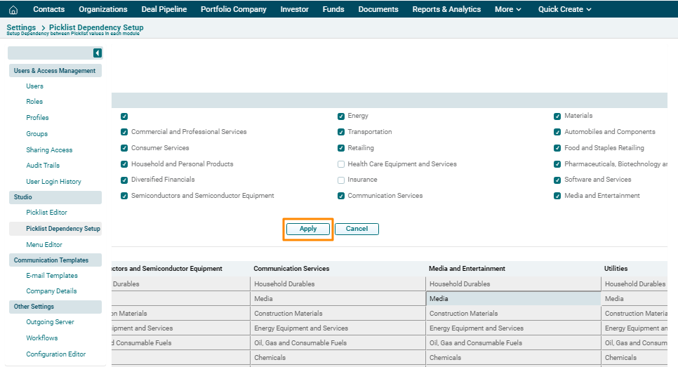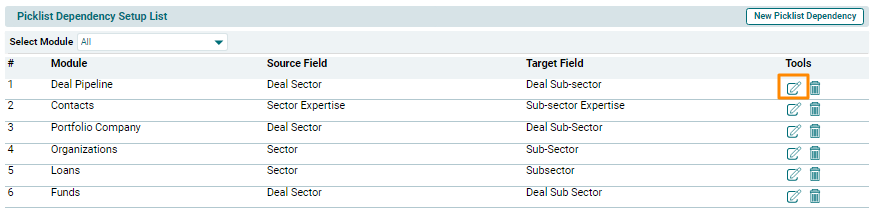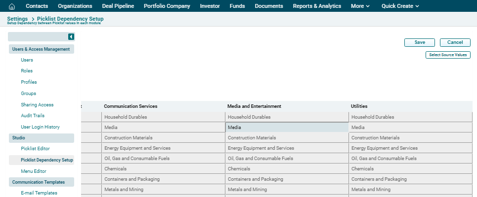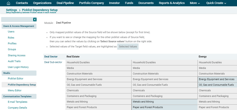 in Deal Pipeline module. Deal Sector - source field, and Deal Sub Sector -