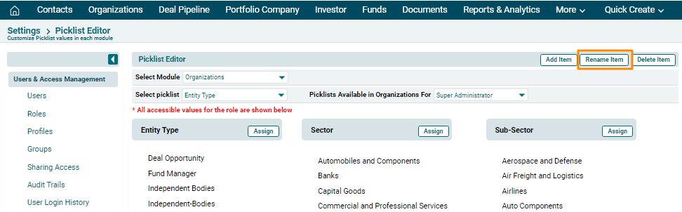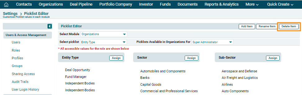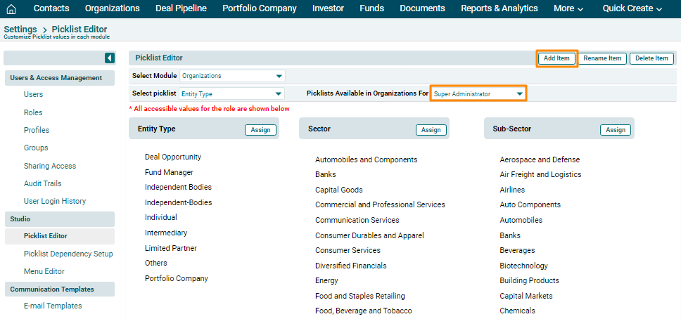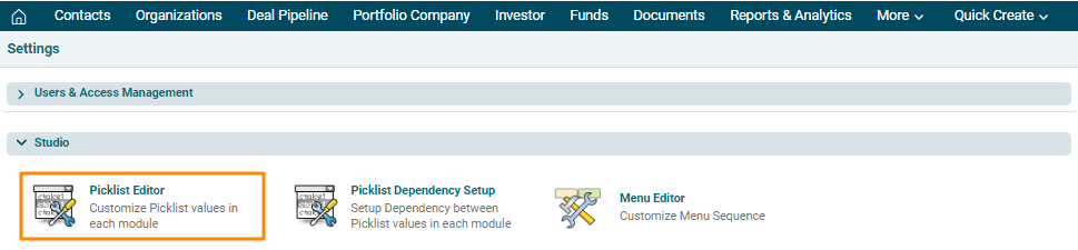 configure picklist values in different modules. It enables you to add new