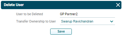 4. You will be prompted to transfer the ownership to another user. Choose a user from the dropdown and click Save.